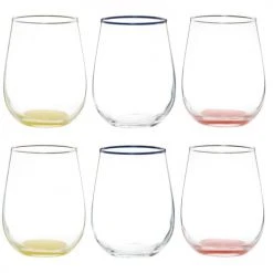 Maisons Du Monde Verres à Eau Gobelets En Verre Transparent Liseré Bleu Et Support En Métal Jaune